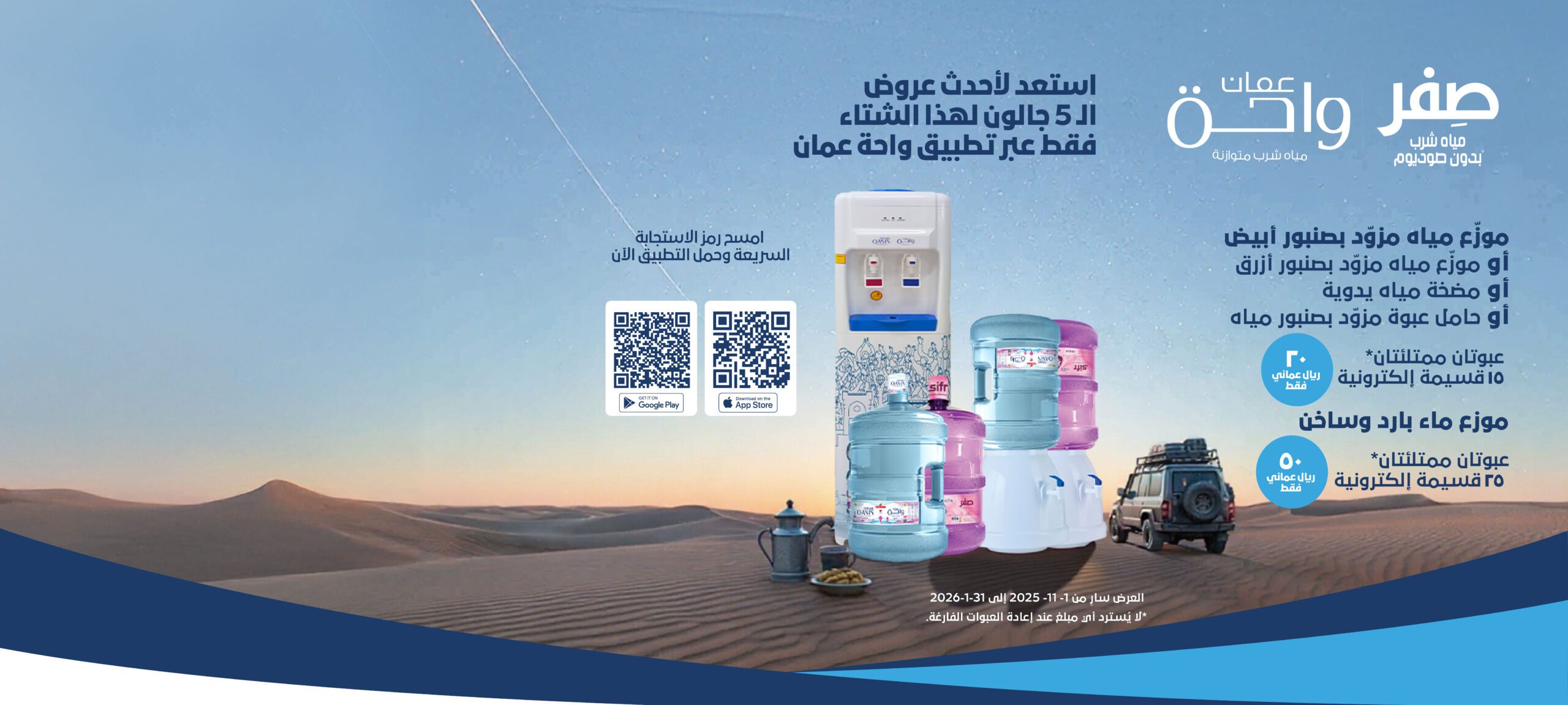 عروض شتوية لا تفوت على عبوات ٥ جالون متوفرة حصريًا عبر تطبيق واحة عُمان.
