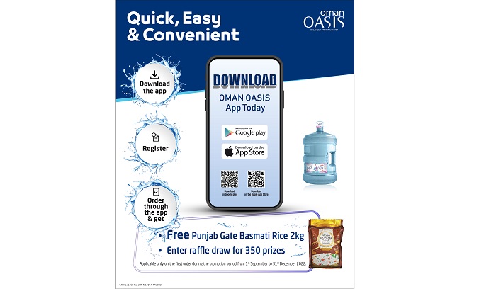 Muscat: Oman Oasis, the leading drinking water brand that is produced and distributed by Oasis Water Company SAOC, has announced a festive promotion accompanying the launch of the “Oman Oasis” Mobile App. Quick…